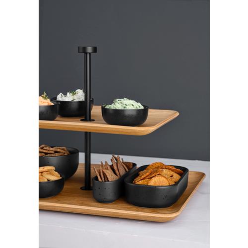 2 tiered stand, rectangular, willow wood tray, matt black metal frame (pack of 2)