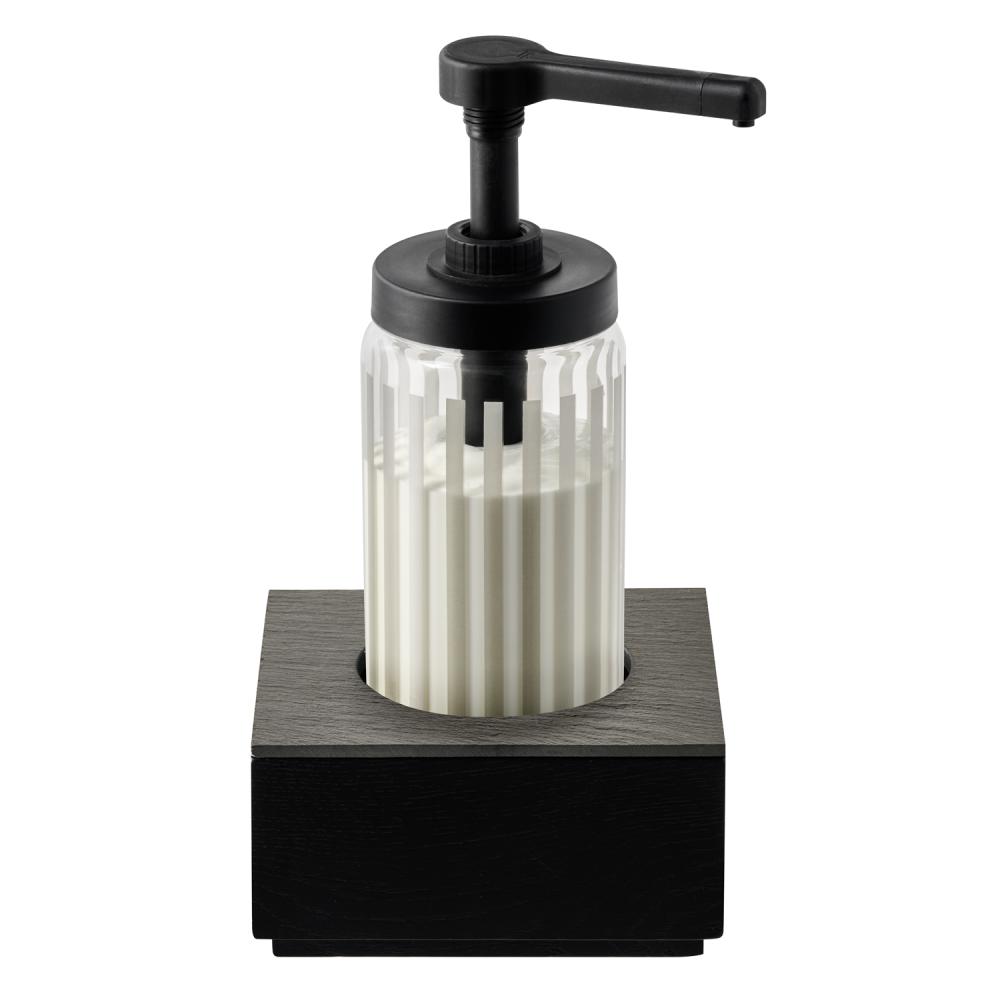 Dosing dispenser, clear with grey stripes, glass body, 10x10cm H 22cm, 1L, suitable for jam/yoghurt/sauces (without pulp/pieces)