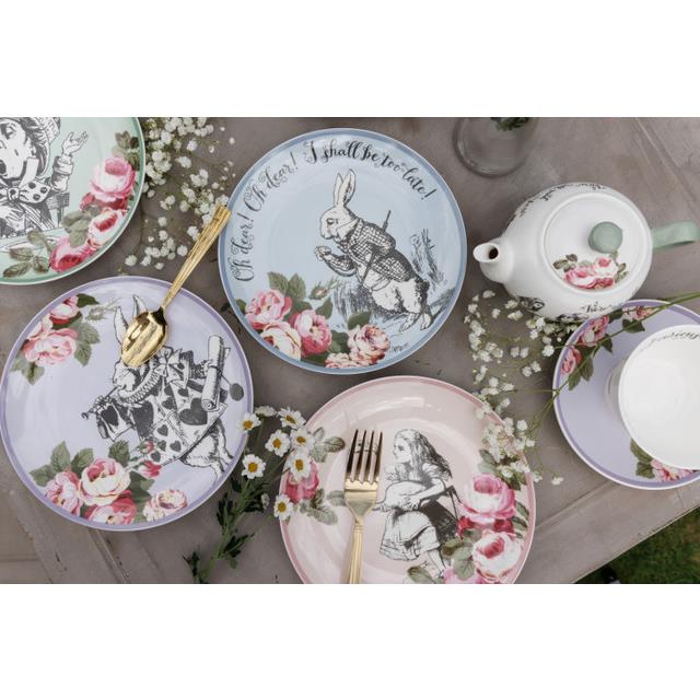 Alice in Wonderland, round, purple/green/blue/pink, fine china, with floral pattern